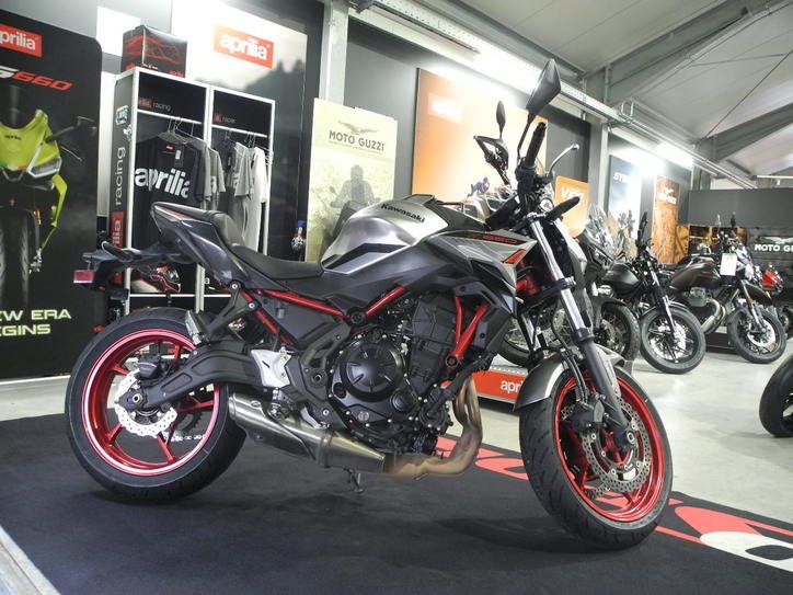 Gebrauchtfahrzeug Kawasaki Z650 mit ABS in silber mit rotem Rahmen vom Kawasaki Vertragshändler mit Herstellergarantie bis 03/2027 * GUTER ZUSTAND aus 1. Hand, großer 24.000km Kundendienst und Reifensatz frisch erneuert, ehemaliges Fahrschulfahrzeug, technisch einwandfrei!